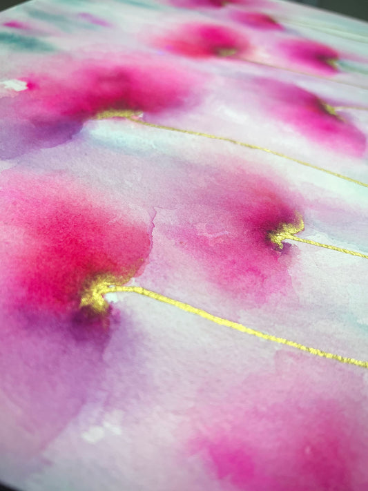 The Golden Hour |11x30” Original Abstract Lavenders Watercolor on Paper